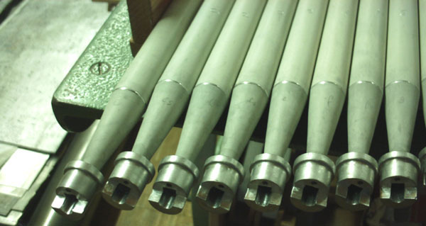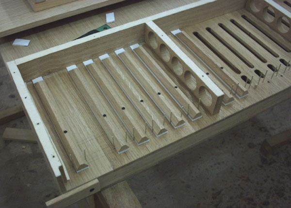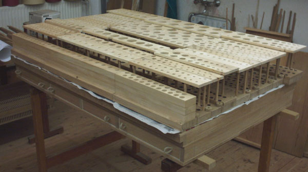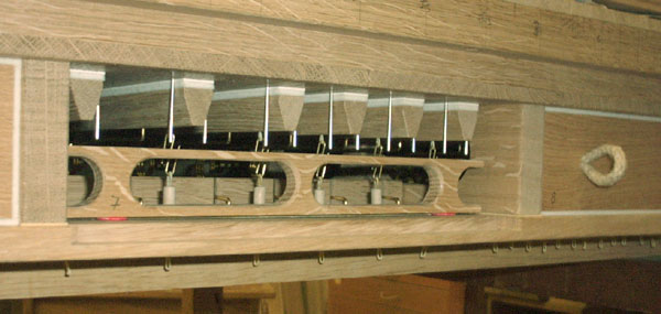 den Einbau. Vorne die Stöcke für das Zungenregister.
