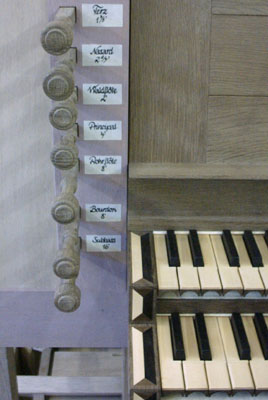 Der Spieltisch mit Notenpult.