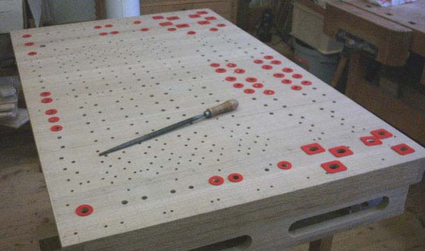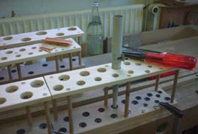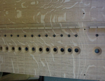 bekommt auf der oberen Seite für jede Pfeife eine Bohrung,